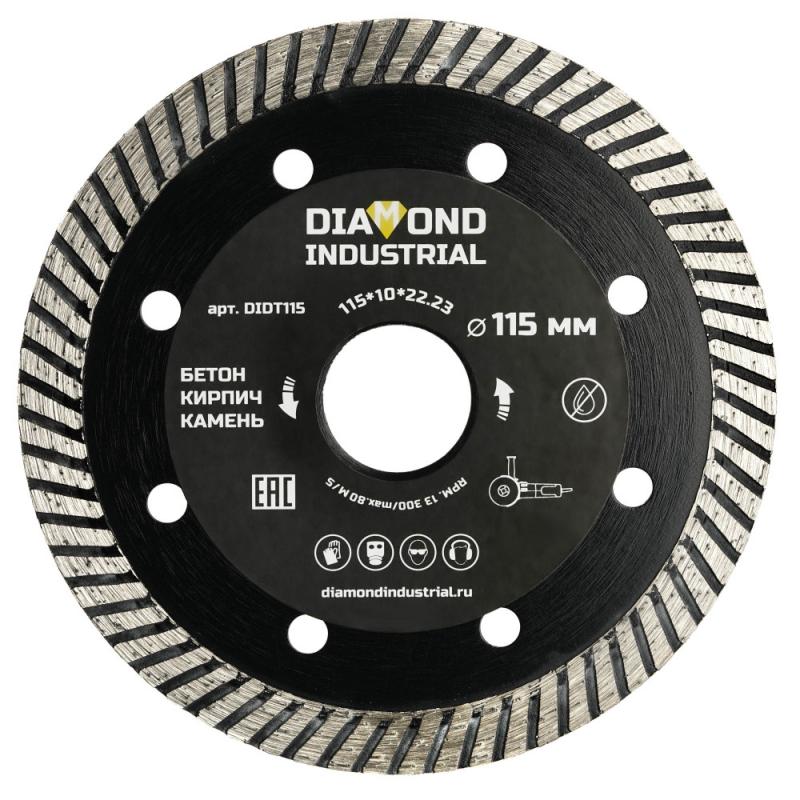 Диск алмазный ТУРБО 115x22,2 имеет волнистую режущую кромку и отверстия, обеспечивающие дополнительный отвод тепла